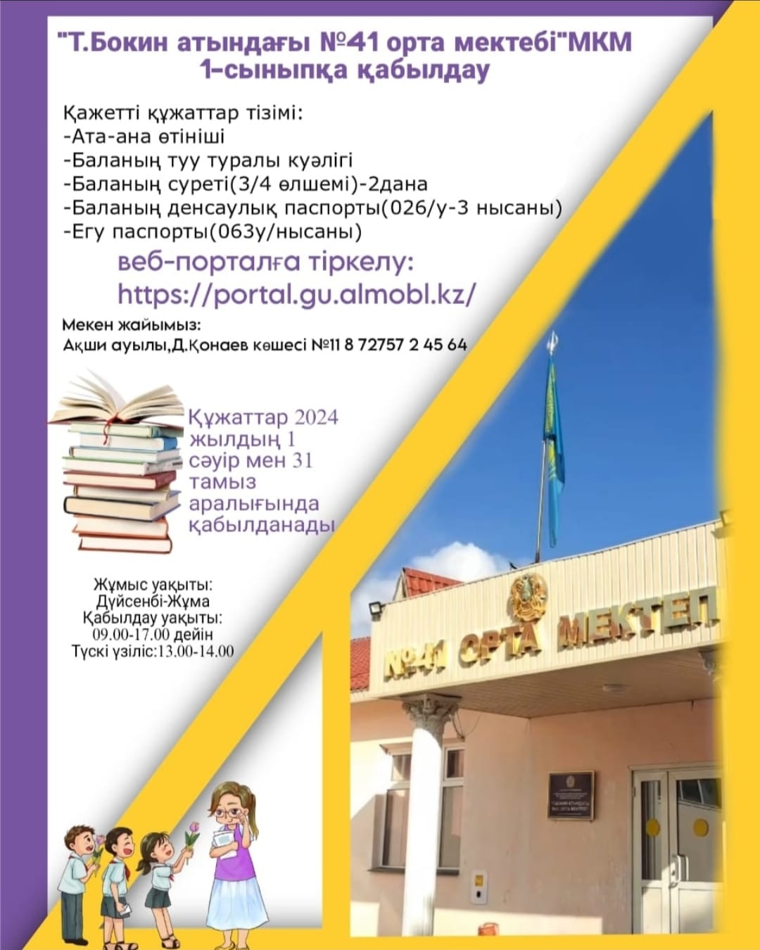 1 сыныпқа қабылдау » №41 ОРТА МЕКТЕП
