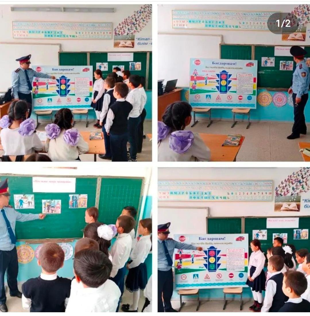 Т. Бокин атындағы 41 орта мектебінің бастауыш сынып оқушыларына Акши ауылының учаскелік полиция инспекторы М.Жолболдин балаларға мектепке алғаш келген күні "Жол жүру кауіпсіздігі" такырыбында лекциялар жүргізді.