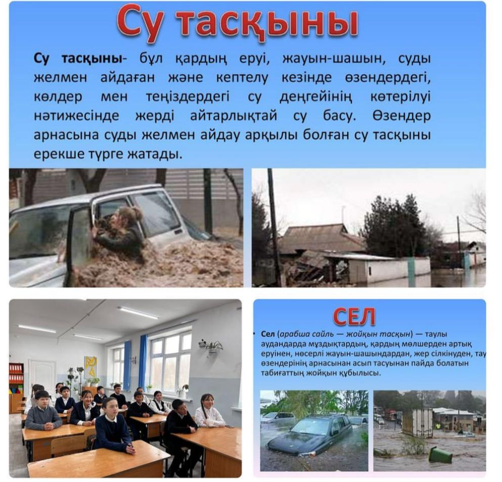 Мектеп оқушыларына АӘД пәні мұғалімі А.Абатов су тасқыны кезіндегі қауіпсіздіктерді айтып , түсіндірме жұмыстарын өткізді.