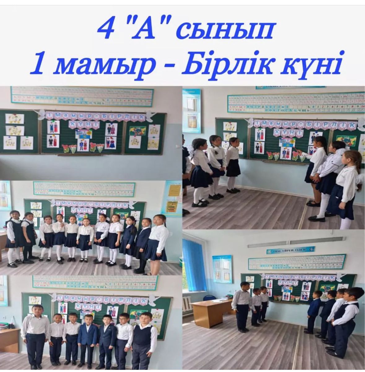 1Мамыр-Бірлік күні мерекесіне орай 4"А" сыныбында сынып сағаты өткізілді.
