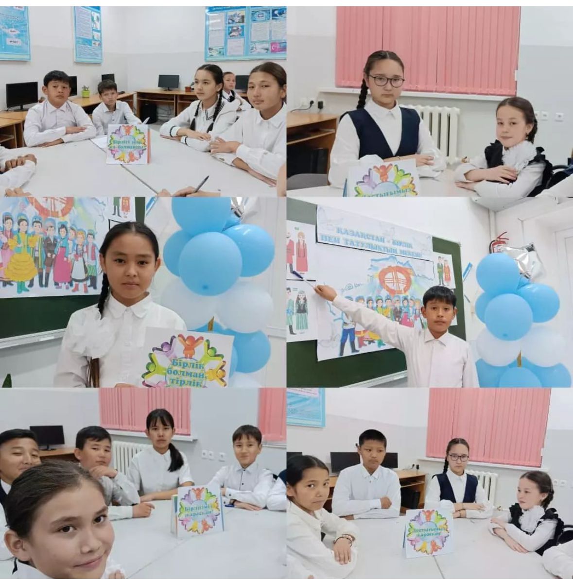 1 мамыр - Қазақстан халықтары бірлігі күніне арналған 6 "Б" сыныбында "Бірлігіміз жарасқан" тақырыбында сынып сағаты өткізілді. Тақырып бойынша оқушыларға бейнебаян көрсетіліп Қазақстанда тұратын басқа ұлт өкілдері туралы мәліметтер берілді. Оқушылар өлең жолдарын оқып өз ойларын ортаға салды. Мақал мәтелдер жарысын ұйымдастырып топ бойынша постер қорғады. Сынып сағатына оқушылар белсене қатысты.