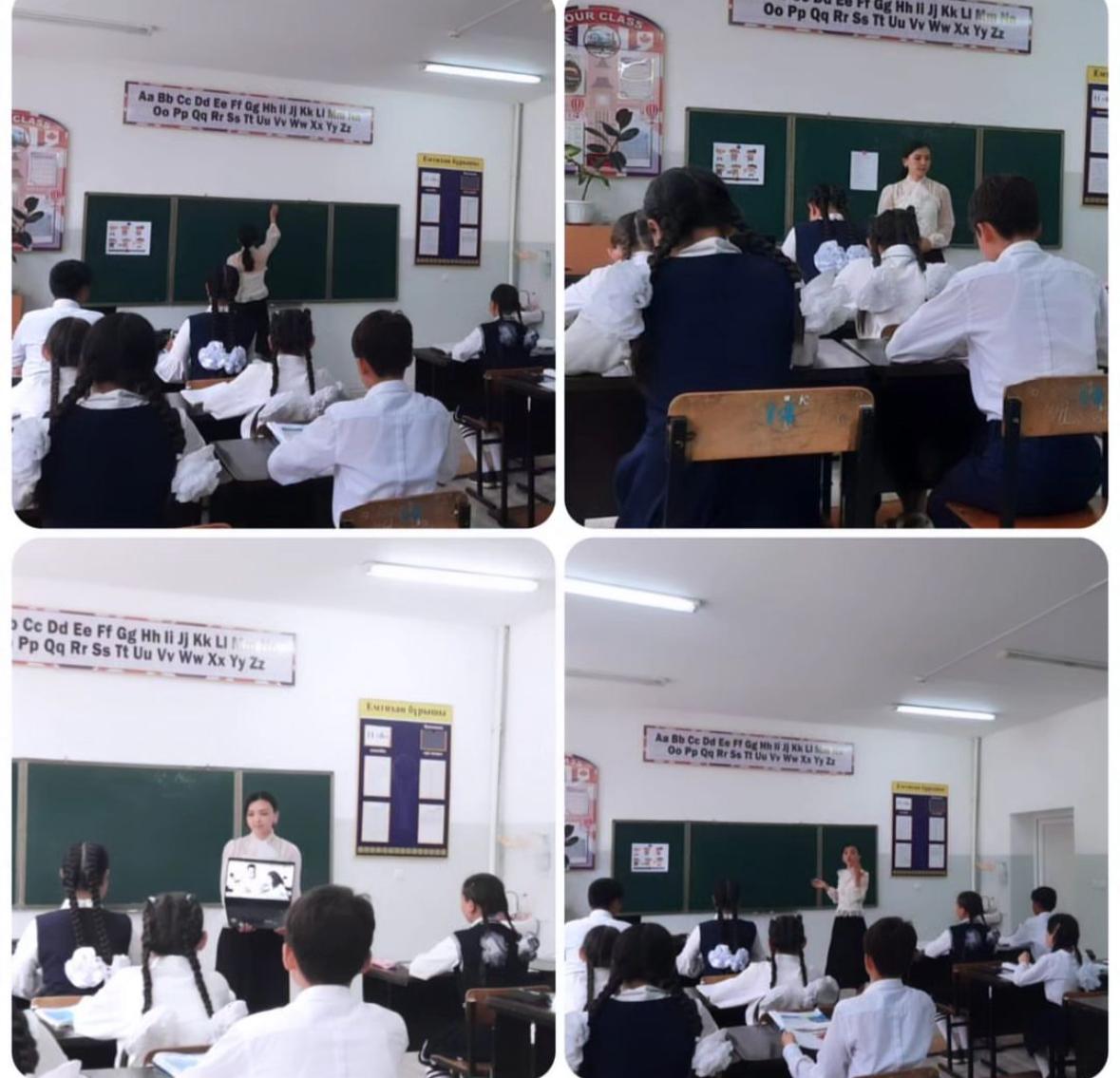 Алматы облысы Іле ауданы Ақши ауылы Т.Бокин атындағы 41 орта мектебінде "Жарқын болашақ иесі - бүгінгі жас маман" апталығы аясында ағылшын тілі пәні мұғалімі, жас маман 2024 жылдың 14-ші мамыр күні 7 "Б" сынып оқушыларымен "Clothes and fashion" тақырыбында ашық сабақ өтті. Ұйымдастыру сәтінде оқушылардан үй тапсырмасы ауызша сұралып, тақырыпқа байланысты жаңылтпаш оқытылды. Жаңа сабақты жаңылтпаш арқылы ашты. Сабақ барысында оқушылар жаңа сөздермен танысып, мәтінмен жұмыс жасады. Жұптық жұмыс барысында оқушылар жұптасу арқылы жаңа сөздерді кестеге бөліп жазып шықты. Топтық тапсырма барысында оқушылар өз идеяларынан дизайн ойлап тауып, топпен қорғап шықты. Әр тапсырма берілгеннен кейін дескриптор айтылып отырды. Сабақ соңында оқушылар ауызша кері байланыс беріп, алған балдарын айтып шықты