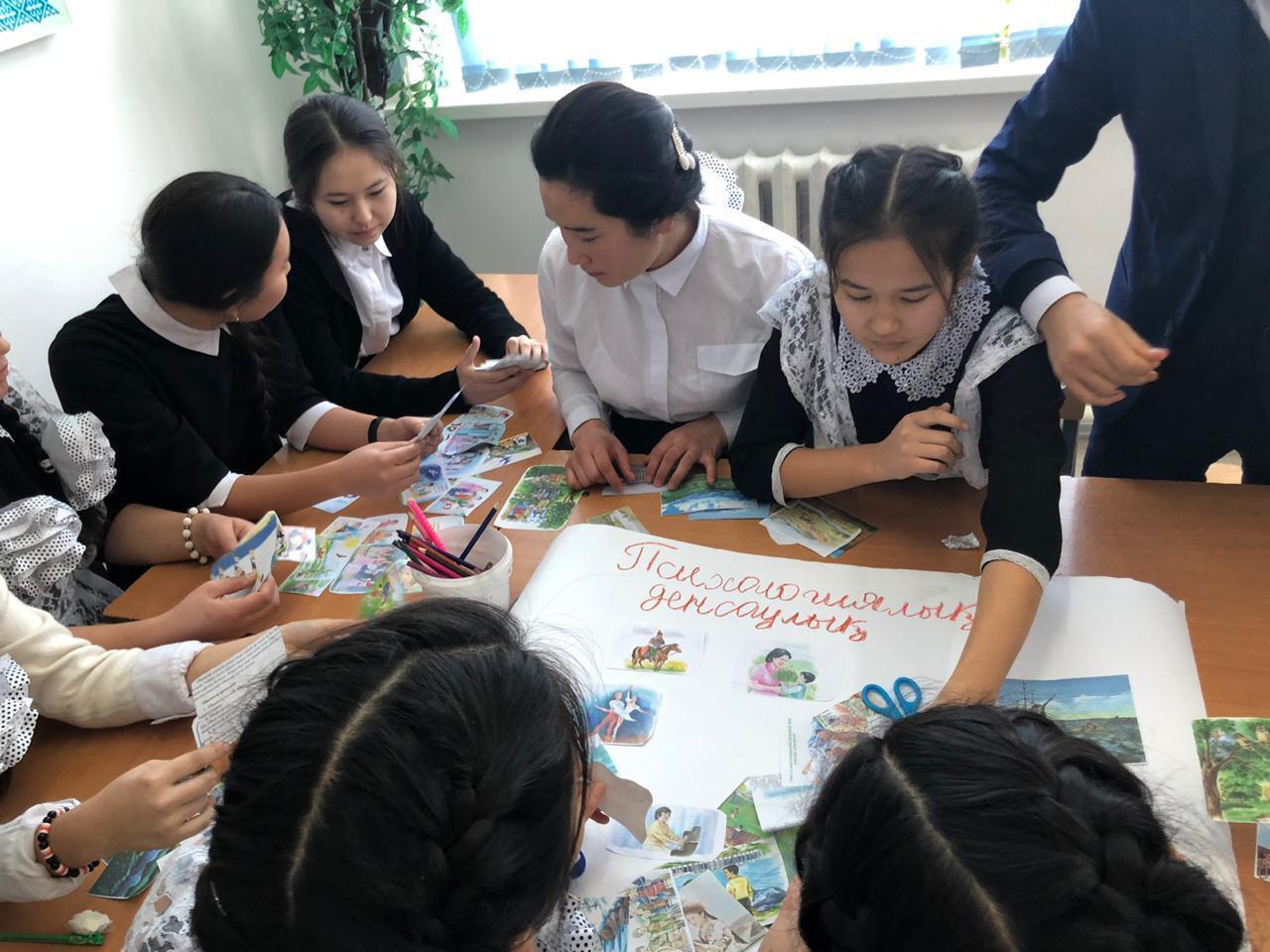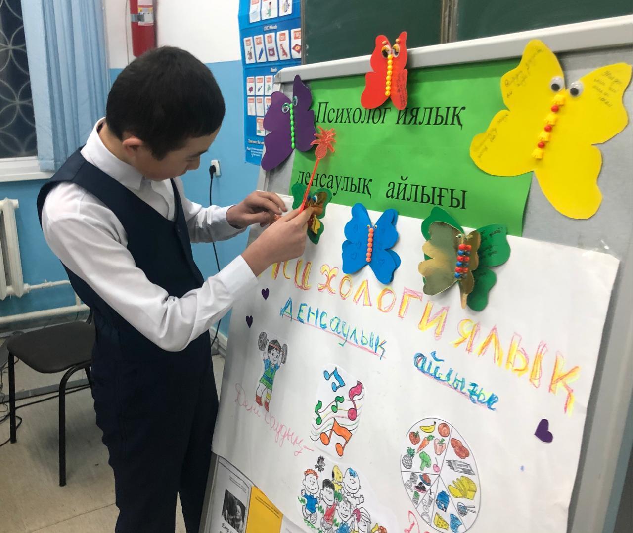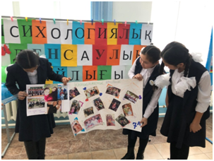 «Психологиялық денсаулық айлығы» барысында 10 сынып оқушыларымен психологиялық жаттығу өткізілді. Қатысушылар бір-бірінің арқаларына сурет салып, түйсіну қабілеттерін арттырды. Бір-бірінің іс-әрекетін пантомимика арқылы түсіністікке жетуге болатынына көзі жетті. Балалардың көңіл-күйлері көтеріліп, жаттығуды бірнеше рет қайталап орындады