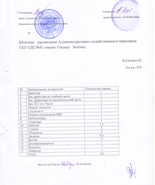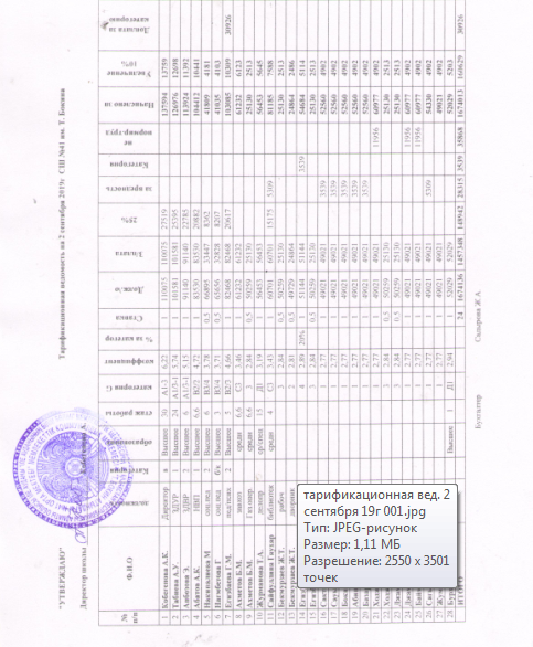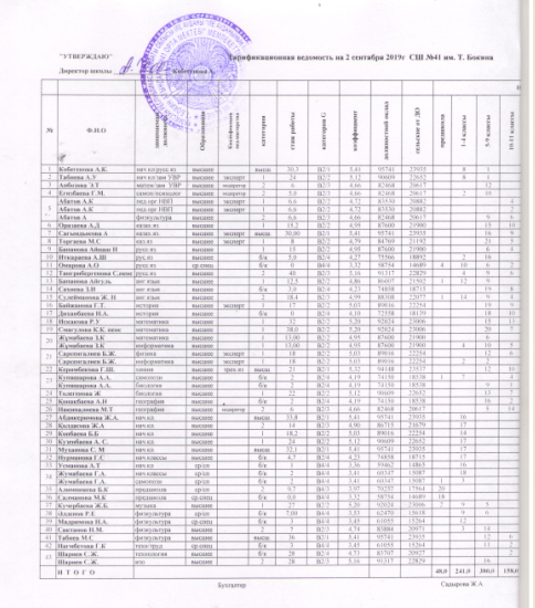 тарификация 2019 год » №41 ОРТА МЕКТЕП