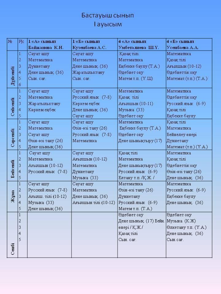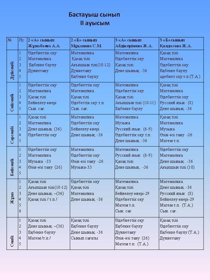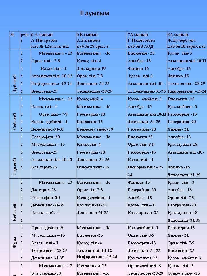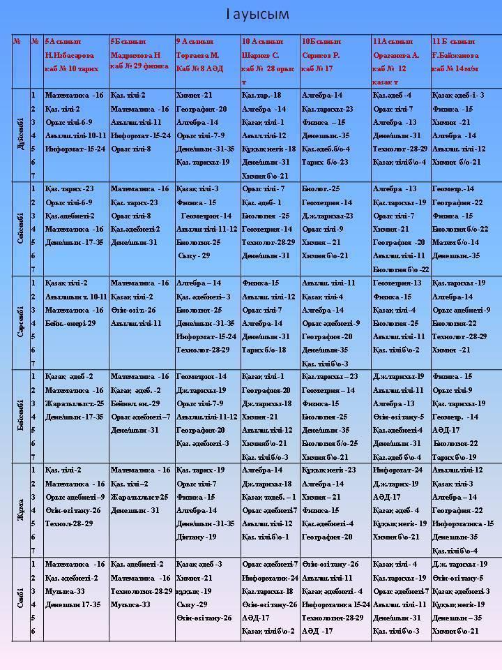 Сабақ кестесі » №41 ОРТА МЕКТЕП