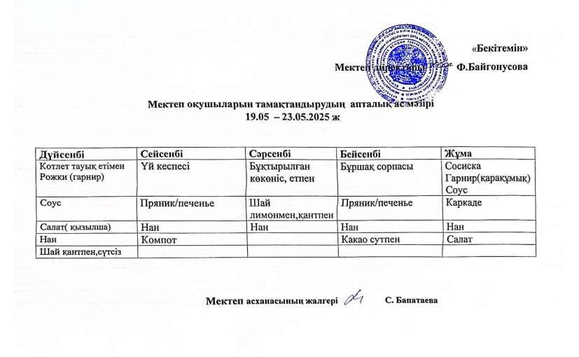 Апталық ас мәзірі » №41 ОРТА МЕКТЕП